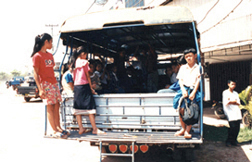 バスの車種も色々あって日本から送られたバスから、小型トラックに屋根を着けただけのバスと様々です。乗客も生きたニワトリを手に乗る人やらいろいろ。