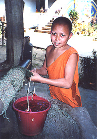 ラオスは敬謙な仏教徒の国です。小乗仏教でオレンジ色の袈裟を着たお坊さんがいたるところにおり子供の僧侶もよく見かけます。