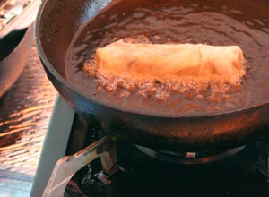 | ―ベトナムチームの“アツい”一日― 10月も名ばかりの暑い陽射し、熱い油でこんがりきつね色に揚がった春巻き、 そして熱のこもった売り声―。 10月2日(日)の「グローバルフェスタJAPAN2005」(注:旧国際協力フェスタ)で 揚げ春巻きの出店を出したベトナムチームの一日は、様々な意味で“アツい”一日だった。 JVCとしては前日からグローバルフェスタに参加しており、 前日のタイチームはお菓子の出店を開き、好評のうちに完売という成功ぶり。 「ベトナムの味を再現できるかな?」「どれだけ買ってもらえるかな?」 朝の開店前、期待と不安の入り混じった気持ちがしたのは自分だけではないだろう。 しかし、結果は見事に完売御礼。朝の不安は嬉しい悲鳴に変わった。 「ネム・ザン」と呼ばれるベトナム風揚げ春巻き。 普通の春巻きより少し小ぶりで、パリパリした食感が楽しいベトナム料理の定番の一つだ。 今回は1本の春巻きを2等分して、それを3つ1セットで販売。値段200円也。 ベトナム料理には欠かせないつけダレも甘辛2種類を用意した。 売り子のNちゃんもアオザイに身を包むなど、まさに雰囲気は「リトル・ハノイ」。 「私の春巻きだけ小さくない?」「少し油っぽかったかな」 春巻きの大きさもバラバラ、手バタバタで、買って下さった方から苦言を頂く事もあった。 初挑戦ゆえの失敗とはいえども、ぜひ今後に生かしていきたい。 それでも、「本当においしかったよ!」と何人かの方に言って頂けたのは、チーム一同本当に嬉しかった。 揚げ春巻きでの出店が決まったのは7月下旬のこと。 この一年間、本当にささやかに活動してきたベトナムチームではあったが、 敢えて一番“アツい”選択肢を選んだ。 けれど、動き出したら全速力というベトナムチームの伝統(?)がこれを機に復活したという裏話もあった。 ベトナムの食文化を紹介できた点では合格点かもしれないが、 JVCやチームの活動紹介がやや疎かになってしまった。 その部分は、この「タムザー」など別の機会を通じて補っていきたい。 今回、揚げ春巻きを食べて下さった方が、 ベトナムの文化や社会・日越関係により一層興味を持ってもらえるようになれば、 ベトナムチームの揚げ春巻きが何かのきっかけになれたら―。 その時こそが、ベトナムチームの大成功の瞬間なのかもしれない。 記:岩田忠士 |